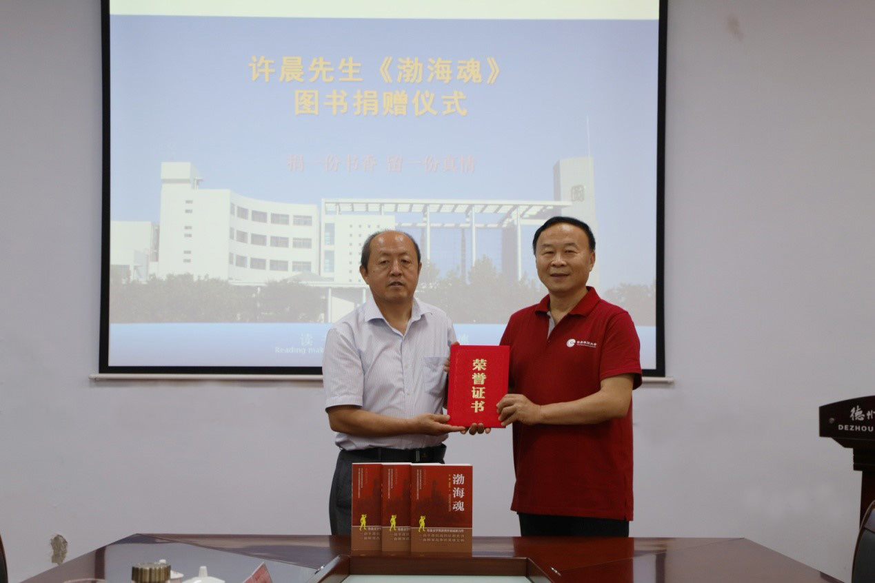 捐赠仪式上,许晨将《渤海魂》捐赠给122cc太阳集成,王金利向许晨颁发荣誉证书。随后,许晨作了题为《书写壮丽史诗 传承红色血脉——从<渤海魂>看新中国的诞生与崛起》的报告,从渤海区的形成与概况、怒吼的小清河、冀鲁清河汇渤海、血沃中华、魂兮归来五个方面讲述了战争年代渤海革命老区的发展历程、英雄人物和传奇事迹,全景式再现了渤海革命老区和滨州人的英雄风貌,讴歌了气贯长虹的“不屈不挠、艰苦奋斗、顾全大局、无私奉献”的“老渤海精神”,使广大党员接受了一次深刻的党史学习教育洗礼。