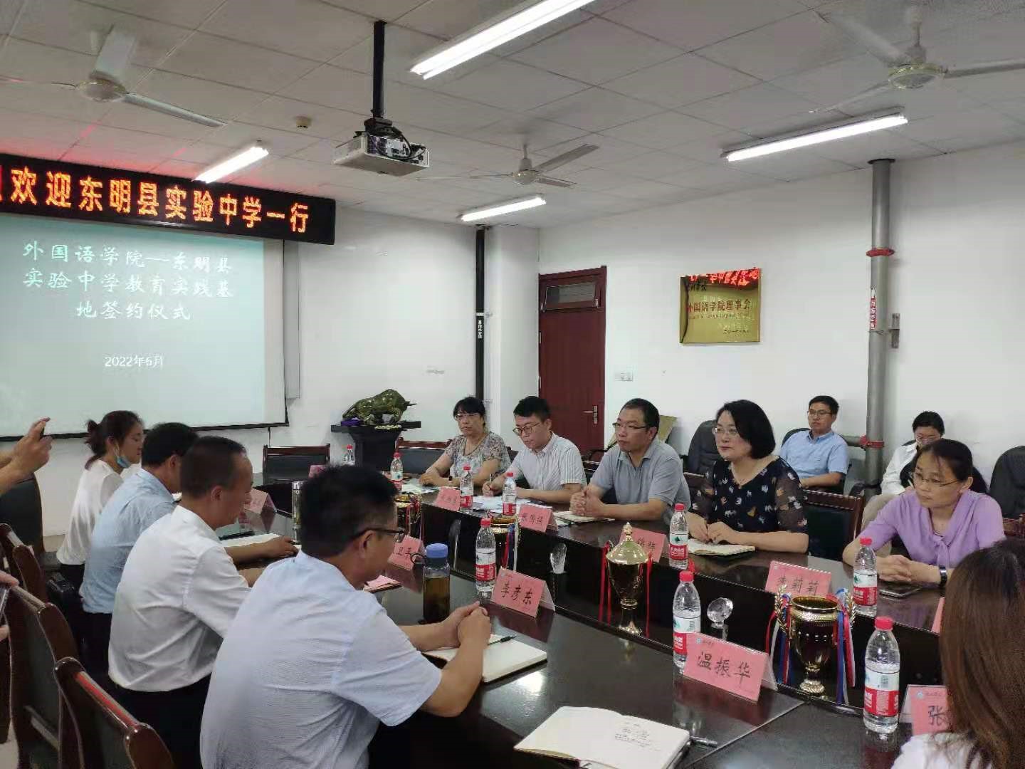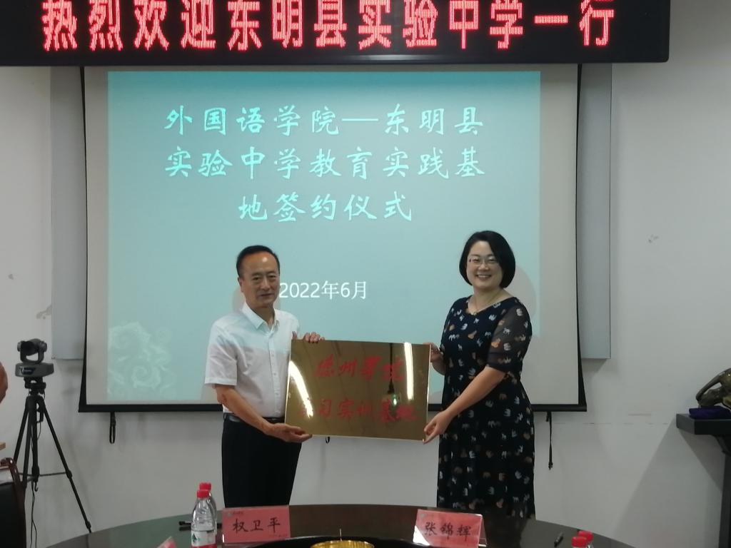 为搭建更多优质的校外实践教学平台,保障实习实训质量,6月30日,外国语学院与菏泽市东明县实验中学签署教育实践基地协议书,并举行实习基地授牌仪式。