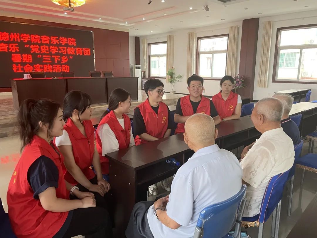 依托各地红色资源,组织学生开展重走红色足迹、追溯红色记忆、访谈红色人物、挖掘红色故事、体悟红色文化等多种形式活动,学习宣传党的百年奋斗重大成就和历史经验。音乐学院“青音乐”党史学习教育团到德州市新园村开展社会实践,聆听全国劳动模范、新园村党总支书记周英亮同志党史讲解,参观当地党史展馆,音乐学院学生还结合自身专业以文艺演出的形式在新园村民中开展党史学习教育宣传。演出涵盖古筝演奏《井冈山上太阳红》、舞蹈《东方红》、朗诵《红岩魂》、合唱《天耀中华》等,进一步深化巩固了党史学习教育成果。数学与大数据学院以党史滋养初心,厚植发展潜力到济南大桥街道倪家村进行党史宣讲。党史宣讲分别从中国共产党的成立、党史的发展脉络、百年党史取得的辉煌成就和中国共产党开启新篇章四个方面展开讲解,弘扬党史文化,传承红色基因。