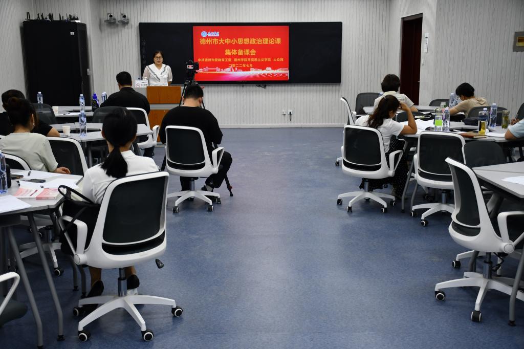 为全面提升思政课教师的教学能力与业务素质,积极推进大中小学思政课一体化建设水平,并助推我市大中小学思政课教师在第二届全省学校思想政治理论课教学比赛决赛及“萌新磨课会”上取得好成绩,7月27日下午,马克思主义学院借助德州市大中小学思政课一体化建设指导中心这一平台,联合中共德州市委教育工委、大众网共同主办了全市大中小学思政课集体备课磨课会。参加全省学校思想政治理论课教学比赛决赛及全省思政课教师“萌新磨课会”的6位大中小学思政课教师参加了此次集体备课磨课会。