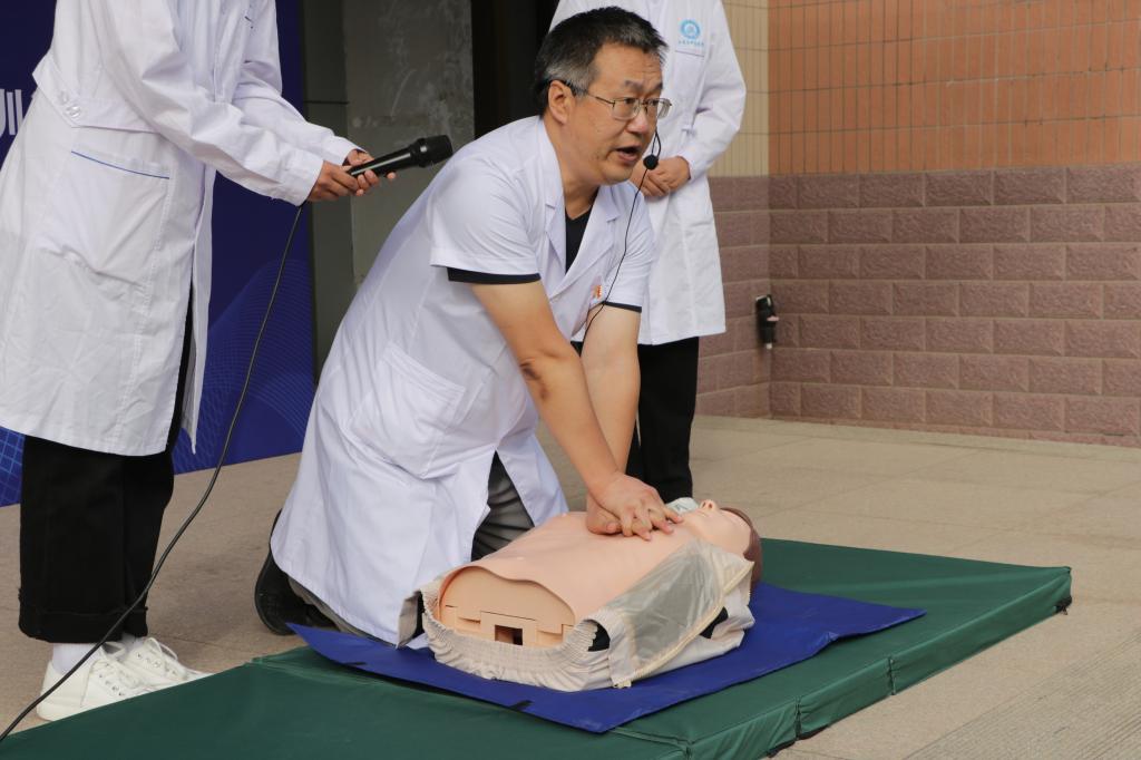医药与护理学院基础医学部主任高峰对心肺复苏和海姆立克急救法进行现场示教,用浅显易懂的方式向师生科普每一个细节。护理系主任任吉带领护理系师生进行规范示范,到场师生学习热情高涨、积极参与练习。本次活动有助于提高师生的健康预防救护意识和公共卫生素养,提升应对突发事件和意外伤害的自救与互救能力。