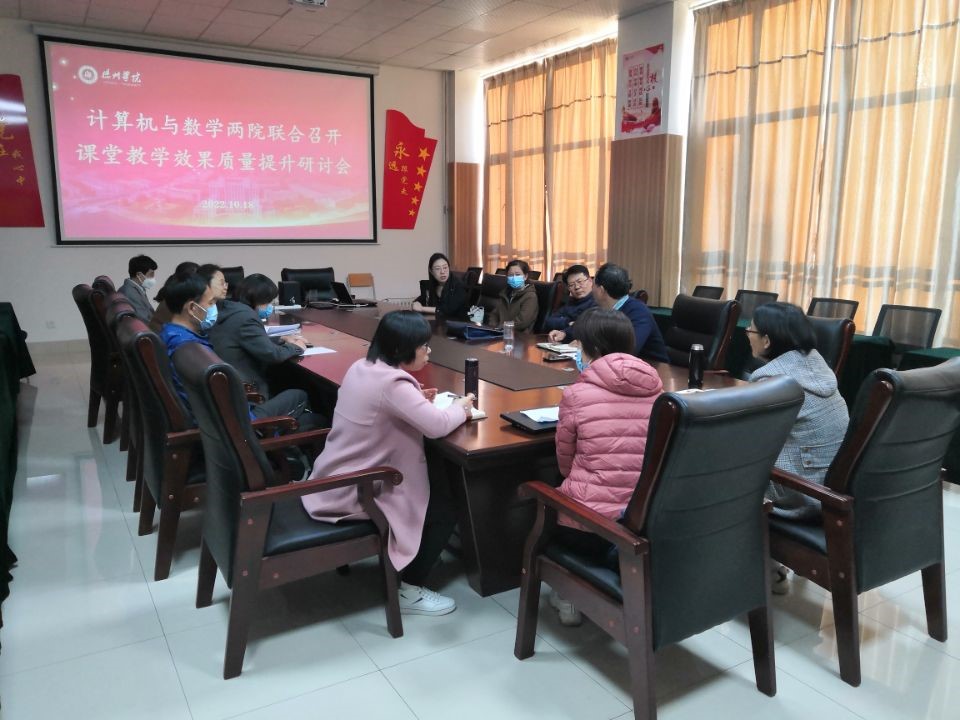 为解决2022级新生学习过程中遇到的问题,提升课堂教学质量,计算机与信息学院联合数学与大数据学院有关老师于10月18日下午在明理楼0326会议室召开了课堂教学质量提升研讨会,担任高等数学、程序设计基础课程的教师参加了此次会议。