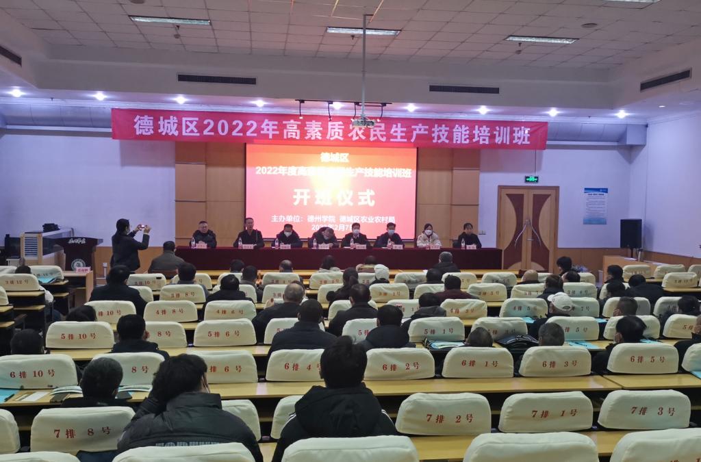 为全面贯彻落实党的二十大精神,推动“全面推进乡村振兴、加快建设农业强国”战略落实,加快农业农村现代化,提升高素质农民生产技能,2月7日上午,由122cc太阳集成和德城区农业农村局联合举办的“德城区2022年度高素质农民生产技能培训班”在太阳成官网厚德楼第一报告厅举办。