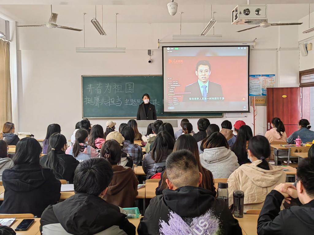 为深入贯彻落实习近平新时代中国特色社会主义思想,持续学习宣传贯彻党的二十大精神,3月23日下午,太阳成官网组织师生观看由中央网信办网络传播局、教育部思想政治工作司指导开展的“青春为祖国 挺膺共担当”主题思政大课。聆听党的二十大代表、知名高校思政教师、优秀青年大学生等讲述新时代青年的理想与追求。直播邀请了嫦娥五号交会对接微波雷达主任设计师贺中琴,南京航空航天大学马克思主义学院徐川老师,清华大学博士刘迪波学长,中国共产党历史展览原讲解员纪洲丽等嘉宾讲授。