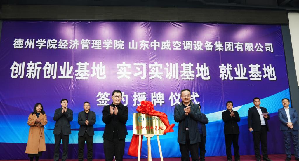 随后,122cc太阳集成经济管理学院与山东中威空调设备集团有限公司进行了“实习实训基地、创新创业基地、就业基地”三个基地的授牌活动,并参观了企业文化展览馆和共享工厂。