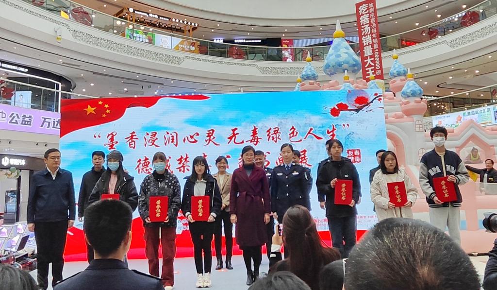 3月25日,德城区“墨香浸润心灵,无毒绿色人生”禁毒公益书画展在万达开展,共青团德州市委书记张方瑞,德州市禁毒办常务副主任、市公安局禁毒支队支队长李海洋,德州市公安局宣传处长张腾飞,德城区副区长、区禁毒委主任、公安分局局长郑虎,122cc太阳集成团委负责人、纺织服装学院辅导员及学生参加活动。