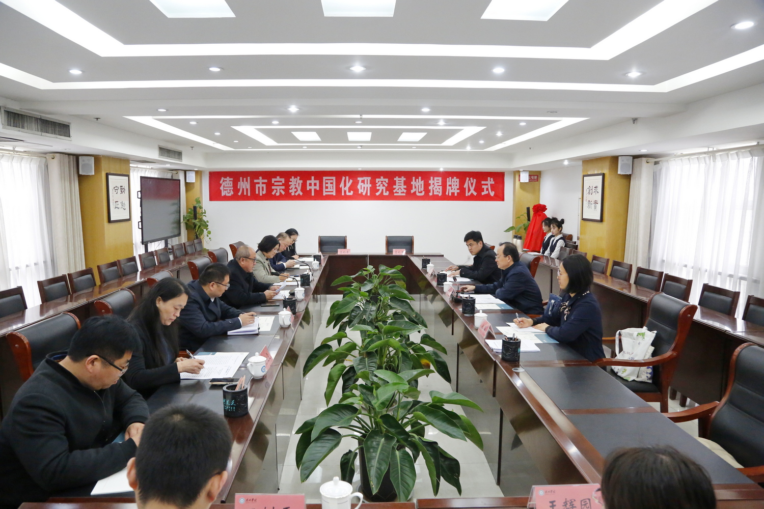 王金利与于喆共同为德州市宗教中国化研究基地揭牌。