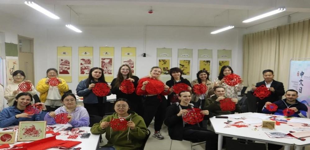 为庆祝“国际中文日”,增进中外文明对话,引导外籍师生讲好中国故事、传播中国好声音,展示真实、立体、全面的中国形象,国际教育学院设计组织了形式多样的庆祝活动,继“庆云行”活动之后,分别于4月24日、25日成功举办了两场中华传统文化研学活动:剪纸和中华诗词诵读。
