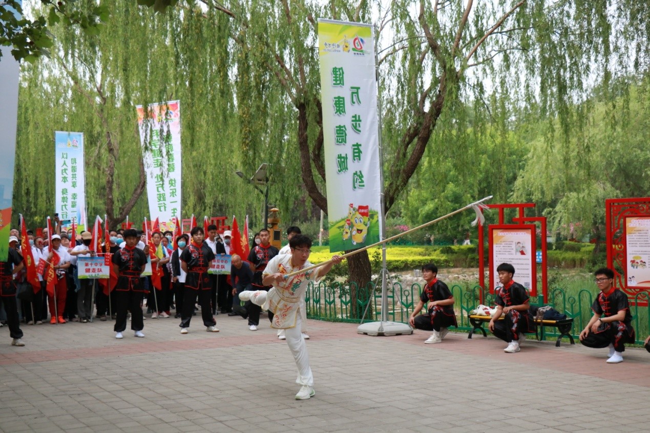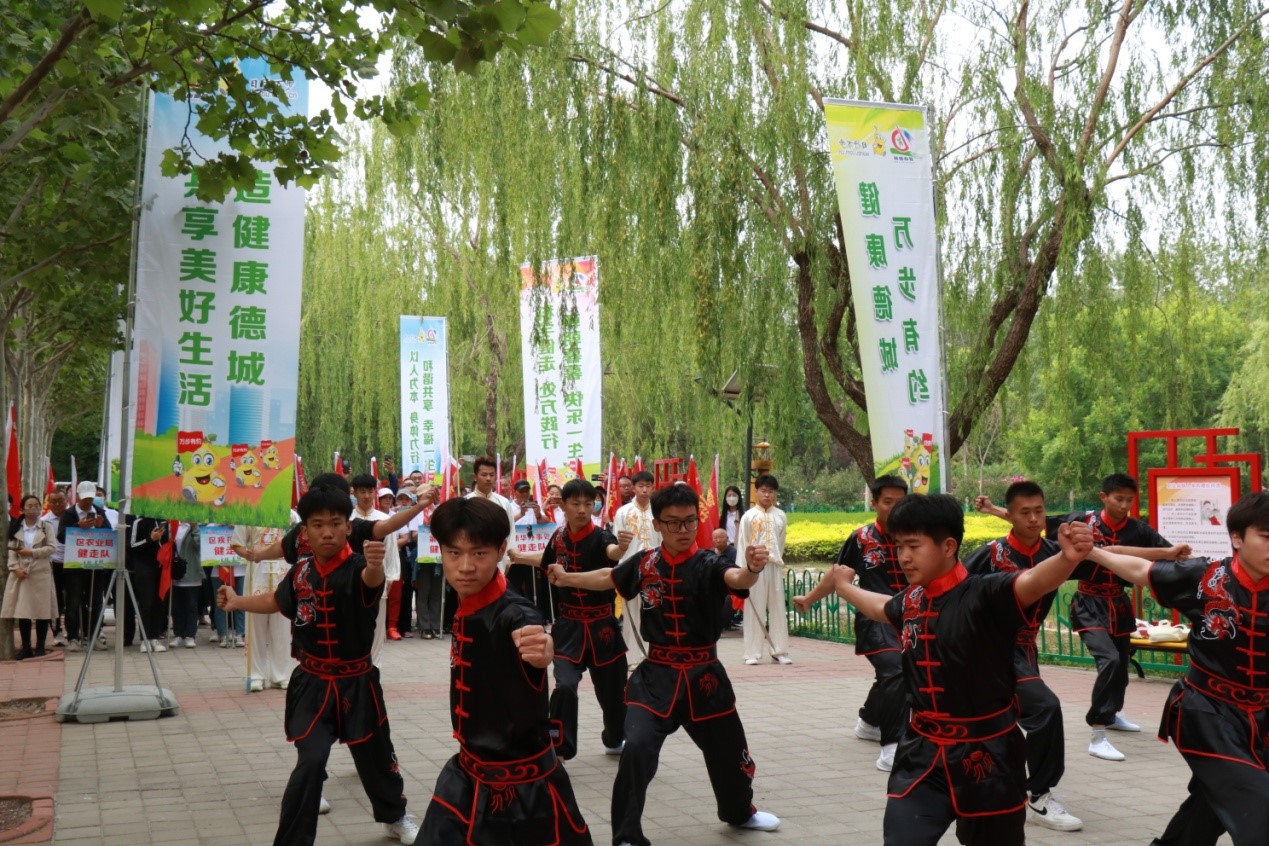 5月10日,全国第八届“万步有约”健走激励大赛德城赛区开赛,全区38支参赛队共计508人参加启动仪式。体育学院受德城区疾控中心邀请,在此次“万步有约”德城赛区启动仪式上进行了八极拳、刀、枪、棍等非物质文化遗产展演,得到了德城区政府党组成员、副区长刘桂芝等各级领导的一致认可与称赞。