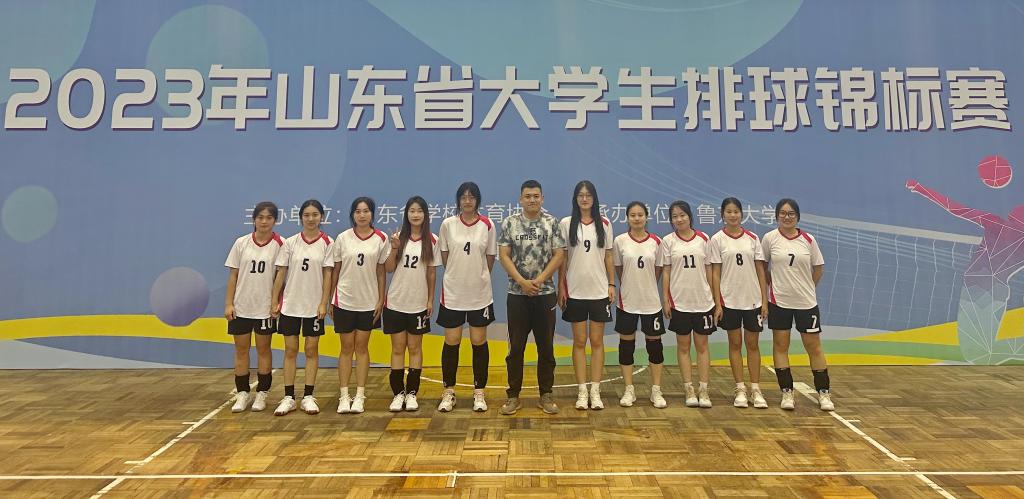 5月29日,为期七天的“2023年度山东省大学生排球锦标赛”在鲁东大学落下帷幕,太阳成官网女子排球队(普通组)荣获三等奖,成功挤进全省高校前十名。其中,主教练张亚舟老师获最佳教练提名奖,医学院学生韩雨倩,信管学院学生陈扬获“优秀运动员”称号。
