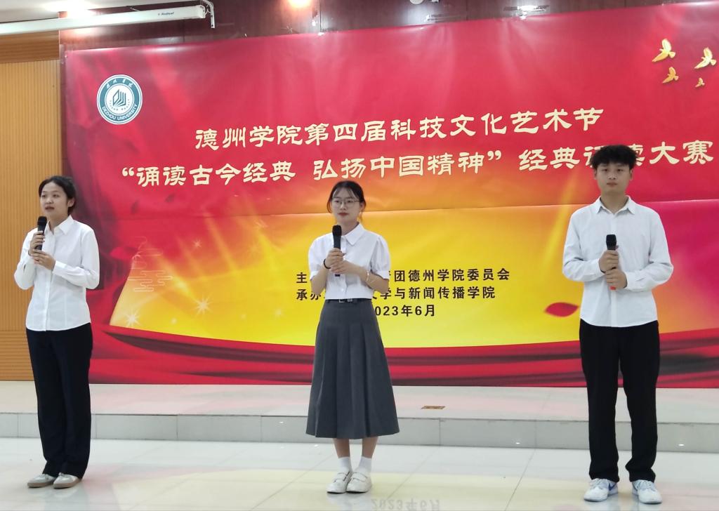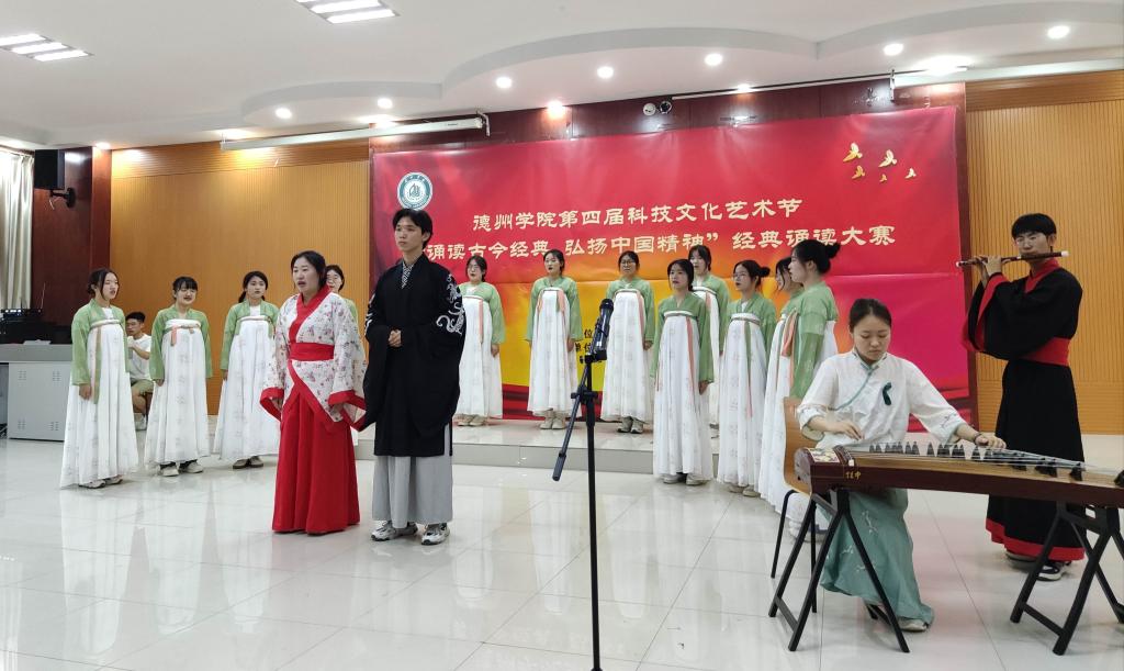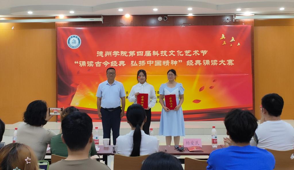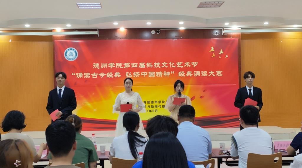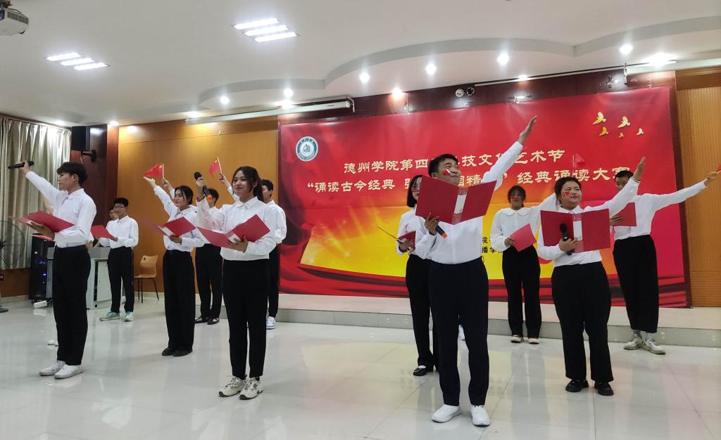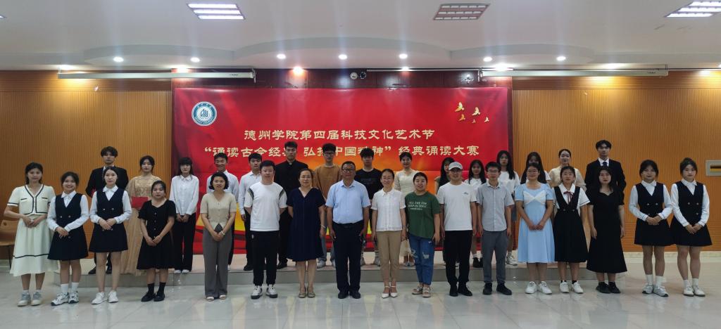 本次经典诵读大赛由校团委主办,文学与新闻传播学院承办,是太阳成官网第四届科技文化艺术节的一项活动。德院师生从诗歌中学习中华文化,从历史中汲取精神力量,砥砺前行再出发。校团委相关负责人、文学与新闻传播学院班子成员、参演学院的师生代表参加了本次活动。
