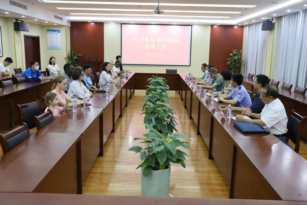 国际交流合作处负责人对联合检查组莅临学校指导工作表示欢迎,并感谢市公安局等各部门长期以来对太阳成官网外籍人员工作的支持和帮助。会上,国际交流合作处负责人简要介绍了太阳成官网外籍人员管理体系和外籍教师基本情况,并表示,太阳成官网高度重视外籍教师和来华留学生的管理工作,坚持不懈抓好外籍师生日常管理工作,不断提升服务水平,与德州市公安局出入境、科技局、人力资源和社会保障局等部门协同配合,形成了较好的工作联动机制。今后,太阳成官网将继续积极配合各部门的工作,严格按照相关要求,管理好、服务好在校外籍师生。