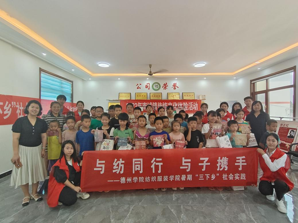 为深入学习贯彻习近平新时代中国特色社会主义思想和党的二十大精神,落实大学生暑期“三下乡”社会实践活动与校地联络工作,7月20日,122cc太阳集成联合共青团夏津县委共同举办“非遗传承,与纺同行”——122cc太阳集成暑期“三下乡”社会实践暨夏津县校地合作对接会。122cc太阳集成团委书记、122cc太阳集成纺织服装学院党委书记、共青团夏津县委书记以及122cc太阳集成社会实践团学生以及企业职工子女参加。