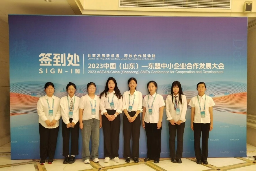 8月3日至8月5日,2023中国(山东)-东盟中小企业合作发展大会在德州市举行。本次大会以“共商发展新机遇释放合作新动能”为主题,由山东省人民政府、中国-东盟中心联合主办,德州市人民政府、省委外办、省工信厅和中国-东盟商务协会总会承办。180余名中外嘉宾相聚线上线下,共话友谊、共享机遇、共谋发展。为全面做好服务保障工作,确保大会顺利举行,外国语学院8名志愿者充实到市外办会议筹备工作组,协助大会的筹备工作。