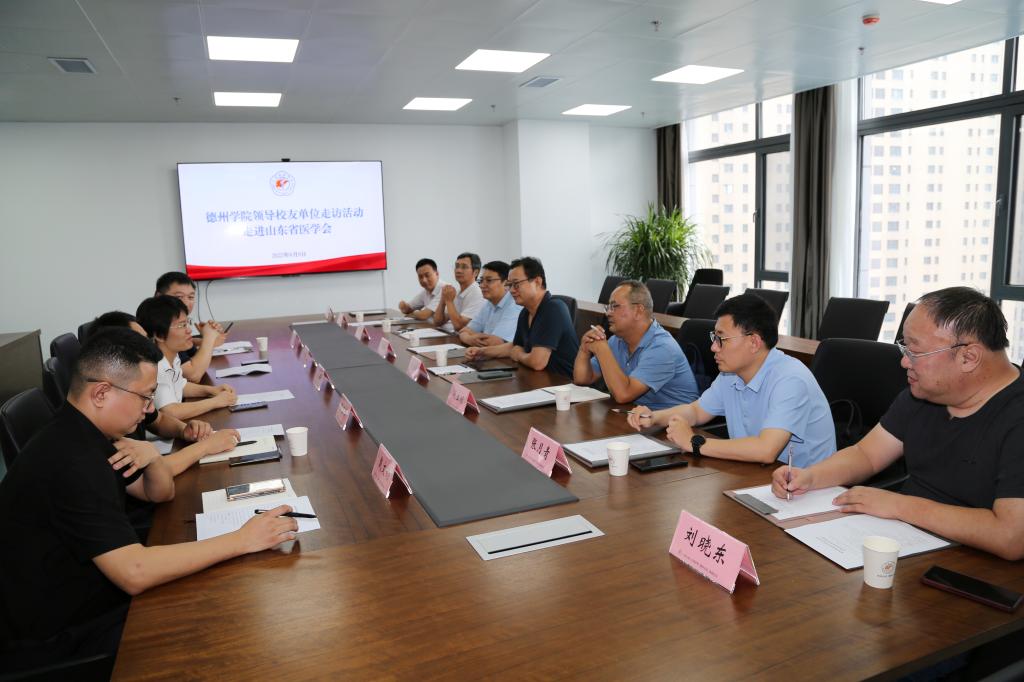 随后,学校一行走访了校友工作单位山东省医学会,与山东省医学会相关领导进行了座谈。山东省医学会副秘书长、济南校友会副会长、2001级汉语言文学专业校友张伟忠详细汇报了山东省医学会的工作内容和发展状况,并表示愿发挥山东省医学院的职能和作用,助力母校的事业发展。