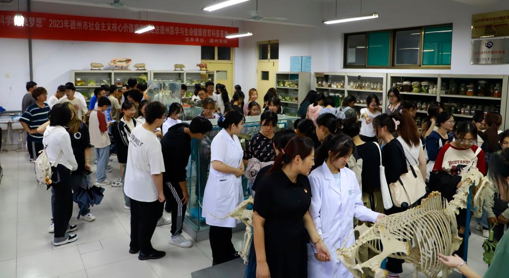 为积极培育和践行社会主义核心价值观,传播科学思想和弘扬科学精神,培养学生“热爱科学,追求创新”的意识。近日,“热爱科学 放飞梦想”德州市2023年社会主义核心价值观科普教育走进德州医学与生命健康教育科普基地活动在122cc太阳集成求索楼医药与护理学院科普基地举办。医药与护理学2023级生物制药、2023级制药工程专业学生约100人参加。