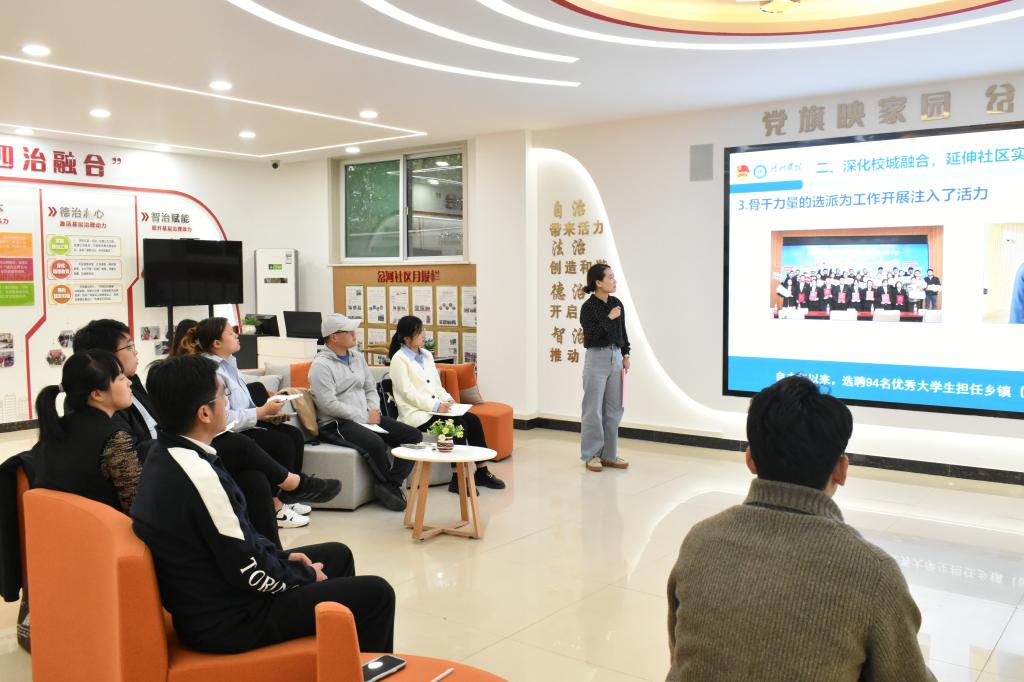 会后,参会人员赴德城区南龙社区、岔河社区观摩太阳成官网“校地融合 社区搭台 学生助力 双向赋能”的“四位一体”社区实践工作模式现场。各高校团委负责人与县市区团委负责人、社区负责人就接下来深化校地共建合作,有效推动社会实践工作提质增效与成果转化进行了深度交流。