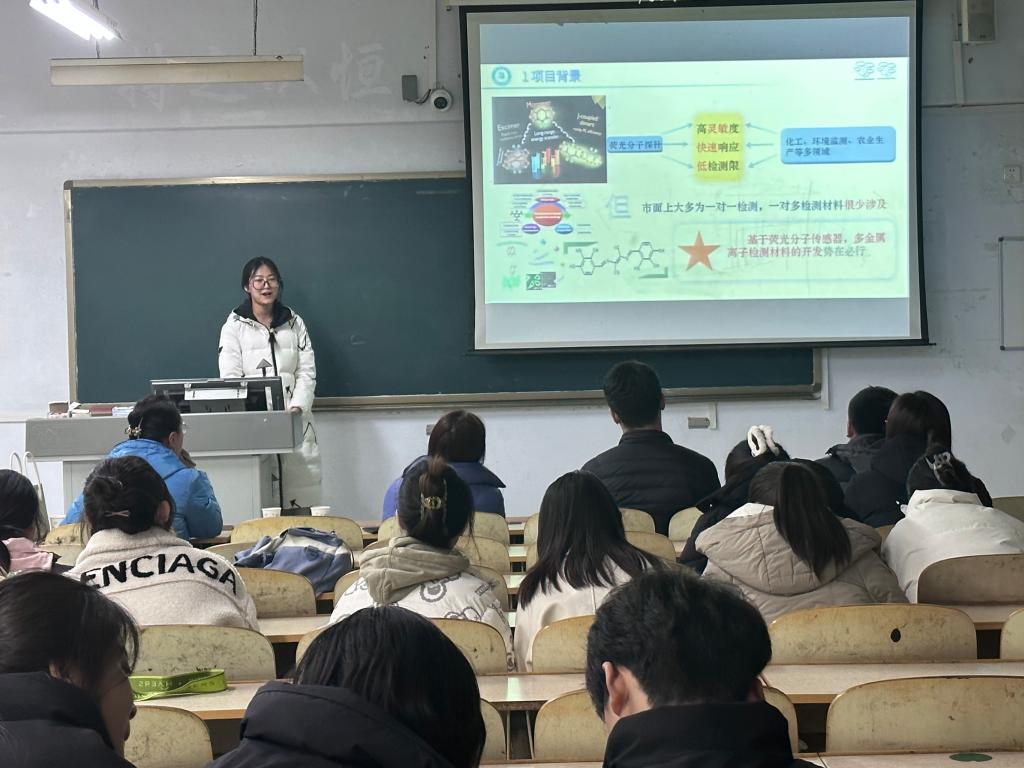 为了更好地激发学生的创新意识,提高学生的创新创业能力,培养一支创新创业生力军,12月5日,化学化工学院于求实楼0201室举办“化”说科创,博士有约——大学生科创分享会。活动邀请获得多项国家级和省级科创奖项的三位博士教师分享和指导科创工作,18支科创项目团队成员参加。