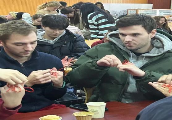 本次联谊活动内容丰富多彩,既有中外同学们的歌舞才艺展示,又有中华手工艺术的教授与体验,中间穿插着趣味游戏互动。整场活动气氛欢快、热烈,中外学生互动频繁,畅所欲言,彼此加深了了解,增进了友谊。留学生们纷纷表达自己对此次活动的喜爱。来自俄罗斯的留学生尤利由衷表示:“感谢所有组织和参加今天活动的同学和老师。我们都很喜欢,很高兴,谢谢你们,并向中国学生和老师转达我们的感谢。”