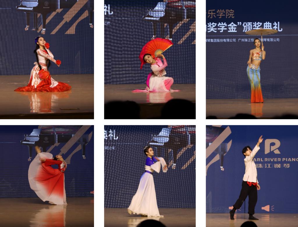 颁奖典礼后,音乐舞蹈大赛优秀学生展演正式开始,舞蹈《舞韵清扬》拉开了节目展演的序幕;二胡协奏《红梅随想曲》表现了人们美好的品格化作对红梅的向往和赞颂;钢琴独奏《吉纳斯特拉第一钢琴奏鸣曲第四乐章》与《冬风练习曲》蜿蜿蜒蜒、百折千回、琴声悠扬。埙筝合奏《梅花三弄》描绘梅花在寒风中次第绽放的英姿,不屈不挠的个性和节节向上的气概;现代舞蹈《如果》更是一场富有震撼力的视觉盛宴和心灵共鸣的体验;歌曲《大风吹》将展演推向高潮;钢琴独奏《纺车旁的玛格丽特》唯美梦幻;四手联弹演奏《拉德斯基进行曲》余音绕梁,让人意犹未尽;男声独唱《大江东去》拂去岁月厚厚的封尘,敞开心灵世界记忆的闸门;最后,展演在合唱《追寻》与《在山村》中落下帷幕。