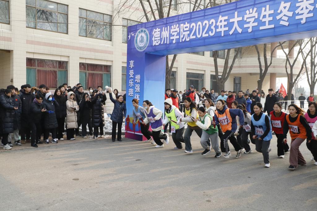 颁奖仪式前,举办2023年大学生冬季长跑接力赛,徐静进行起跑发枪,17个学院的170名运动员参赛,展现了德院学子奋勇争先、艰苦奋斗的精神风貌。
