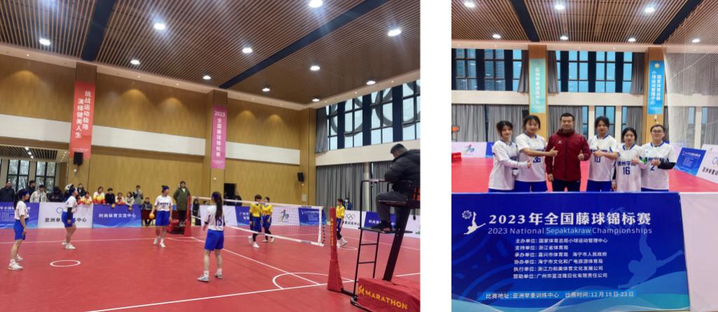 12月16日--23日,2023年全国藤球锦标赛在浙江海宁市亚洲举重中心举办,本次比赛汇集了来自贵州惠水县队、云南民族大学、昆明理工大学等全国各地的优秀藤球选手,122cc太阳集成选派女子藤球队参加该项赛事。获得四人赛、双人赛两项第四名,在单组赛获得了第五名、同时荣获体育道德风尚奖。