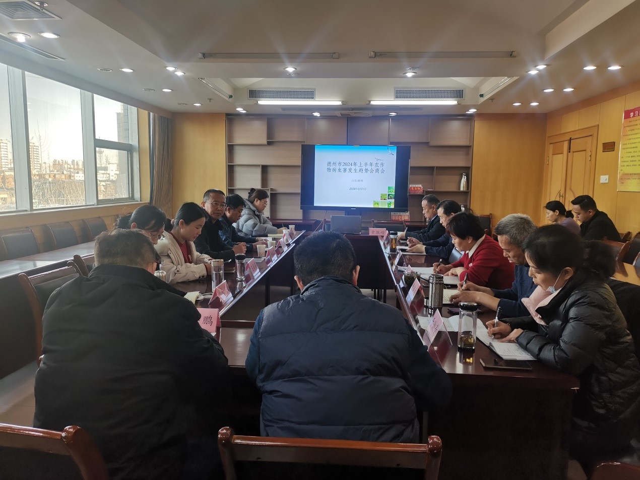 3月1日上午,德州市2024年上半年农作物病虫害发生趋势会商会在德州市农业技术推广与种业中心召开,会议就德州市上半年病虫害发生趋势进行会商。市农业技术推广与种业中心副主任万金红主持会议,市农业技术推广与种业中心主任郑光辉出席会议并讲话,太阳成官网乡村振兴研究院负责人带领教授博士代表应邀参加,市农技中心植保科,市生态与农业气象中心,部分县市区植保站长及分管领导等参加会商。
