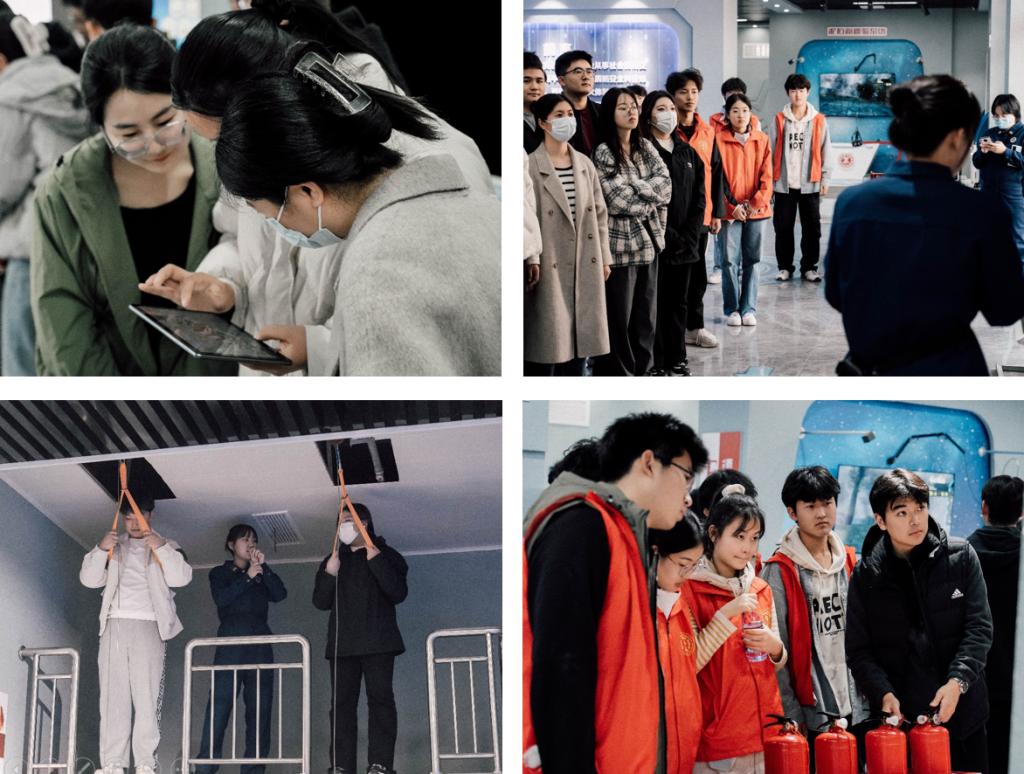 活动中,基地讲解员详细介绍了各种消防设施和器材装备的名称和用途,以及在生活中常见的各种应急火情的处理方法。在讲解员的指导下,同学们体验了缓降绳、烟雾逃生、电梯速降、地震模拟等多个应急情况模拟设备,学会了在不同情况下如何正确有效地保护自己。