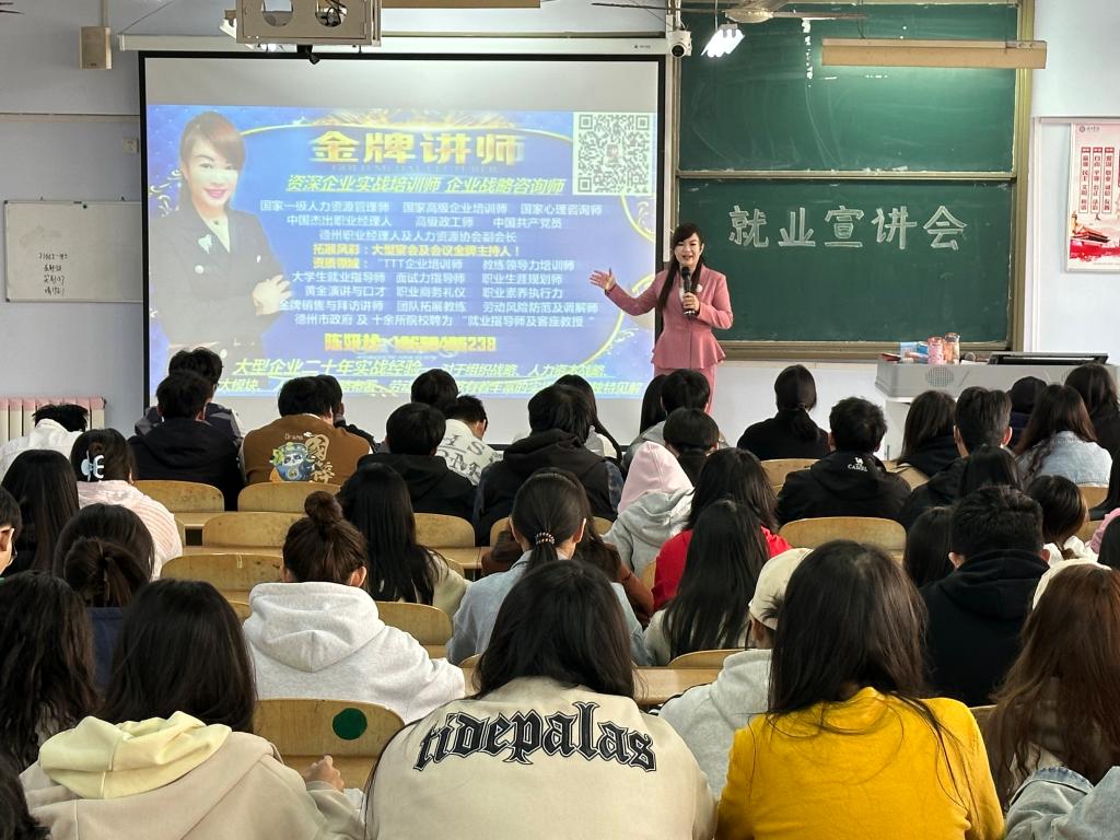 本次宣讲会上,企业相关负责人通过播放宣传片的方式让毕业生了解德药制药有限公司,随后通过PPT展示进一步向毕业生介绍公司的概况、职业发展方向、工资环境、福利待遇等。企业负责人通过一个个生动的案例,鼓励毕业生树立正确的就业观,勇于面对挑战,提升自身综合素质。现场互动环节,毕业生积极与宣讲人互动交流,企业代表耐心解答,同时表示非常期待大家的加入。此次宣讲会为毕业生和企业搭建了良好的交流平台,增强了毕业生顺利就业的决心,帮助他们坚定了就业方向,宣讲会在一片掌声中圆满结束。