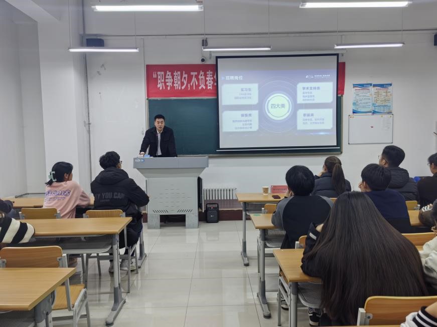 为切实推进学院2024届毕业生高质量就业,搭建学生与用人单位的沟通对接桥梁,3月25日下午,经济管理学院在明理楼0368举办“职争朝夕,不负春华”2024年就业宣讲会暨鲁南制药集团股份有限公司招聘宣讲会,本次宣讲会采用“线上+线下”方式同时进行,学院100余名学生参加宣讲会。