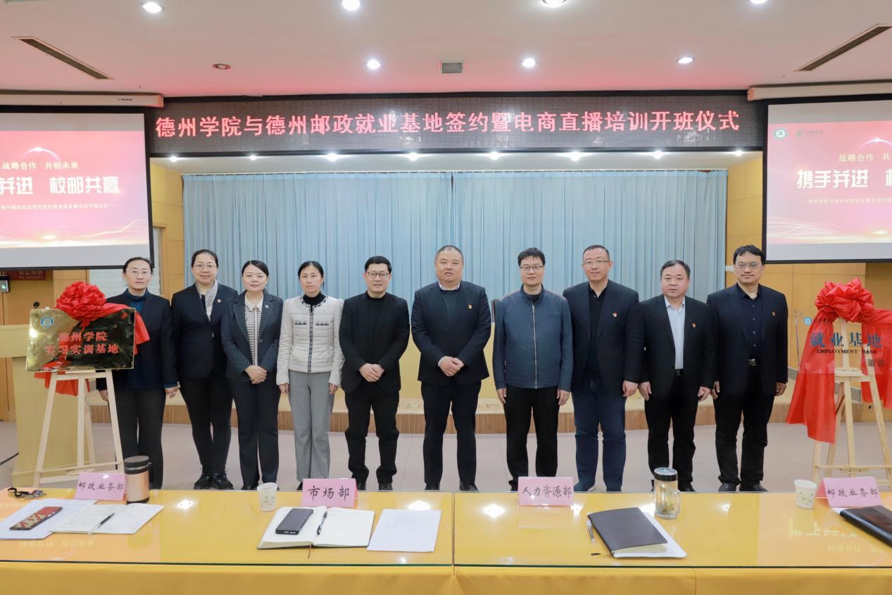 为认真贯彻落实党的二十大精神,深化校企合作,促进产教研融合,扎实开展好就业育人工作,鼓励更多的德院学子扎根德州、服务德州。4月3日,经济管理学院与中国邮政集团公司德州分公司举办“122cc太阳集成就业基地、实习实训基地”签约揭牌暨“电商直播培训”开班仪式。学院相关负责人、邮政公司负责人、各部门负责人、电商班学员代表100余人参加了此次活动。