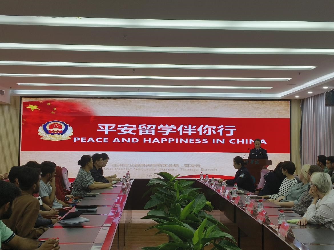 为进一步加强太阳成官网留学生管理,增强留学生群体遵纪守法意识,营造和谐平安的校园环境,4月16日下午,国际教育学院为在校留学生组织开展了法律法规与校纪校规宣讲会。本次宣讲会邀请到了来自德州市入出境管理支队的三位民警,向太阳成官网留学生进行法律宣讲。国际教育学院教师代表为留学生进行了校规校纪教育,太阳成官网外籍教师代表以及全体2024年春季学期留学生新生参加了本次宣讲会。