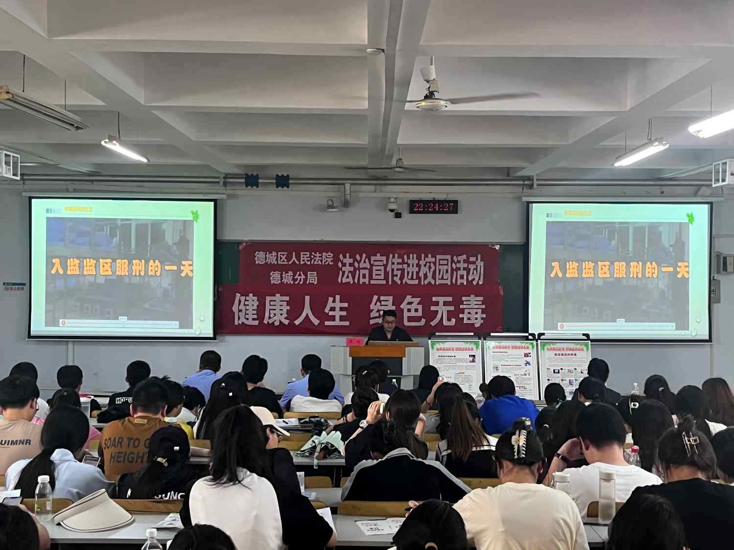 为进一步提高青少年识毒、拒毒、防毒能力,增强自我保护和防范意识,营造健康的成长环境,切实减少毒品危害,6月25日,法学院邀请德城区法院、区公安局开展纪念“6.26国际禁毒日”法治宣传进校园活动。