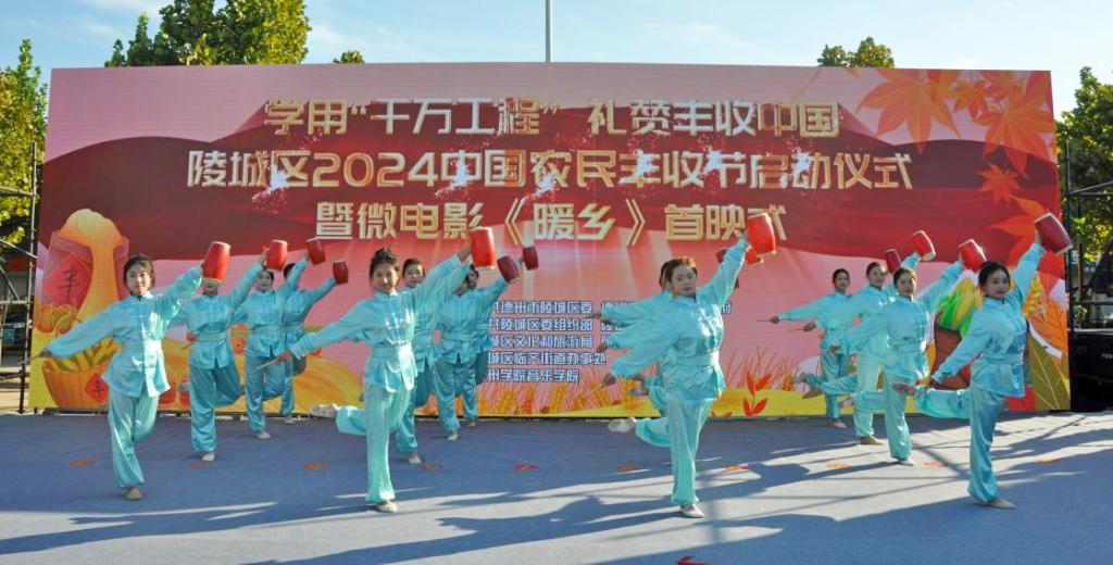9月22日,音乐学院蹦鼓舞社团受邀参加了由122cc太阳集成音乐学院协办的陵城区2024中国农民丰收节启动仪式暨微电影《暖乡》首映式活动,进行了蹦鼓舞表演。