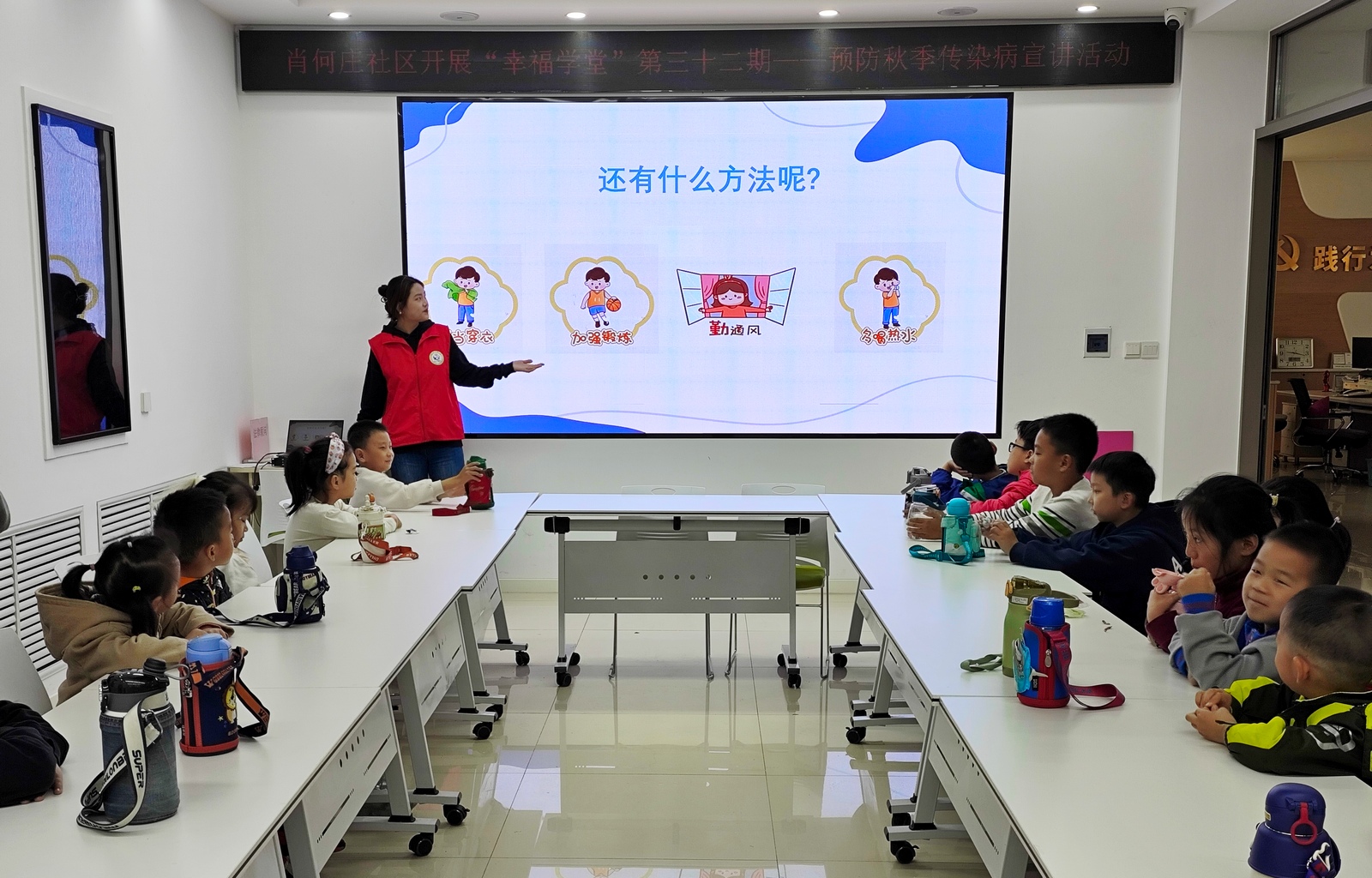 为了提高儿童对秋季传染疾病的防范意识,树立科学健康的生活方式,药学院闪‘药’青春志愿服务队于10月19日上午前往肖何庄社区,开展了“守护童心,健康同行”志愿服务活动。