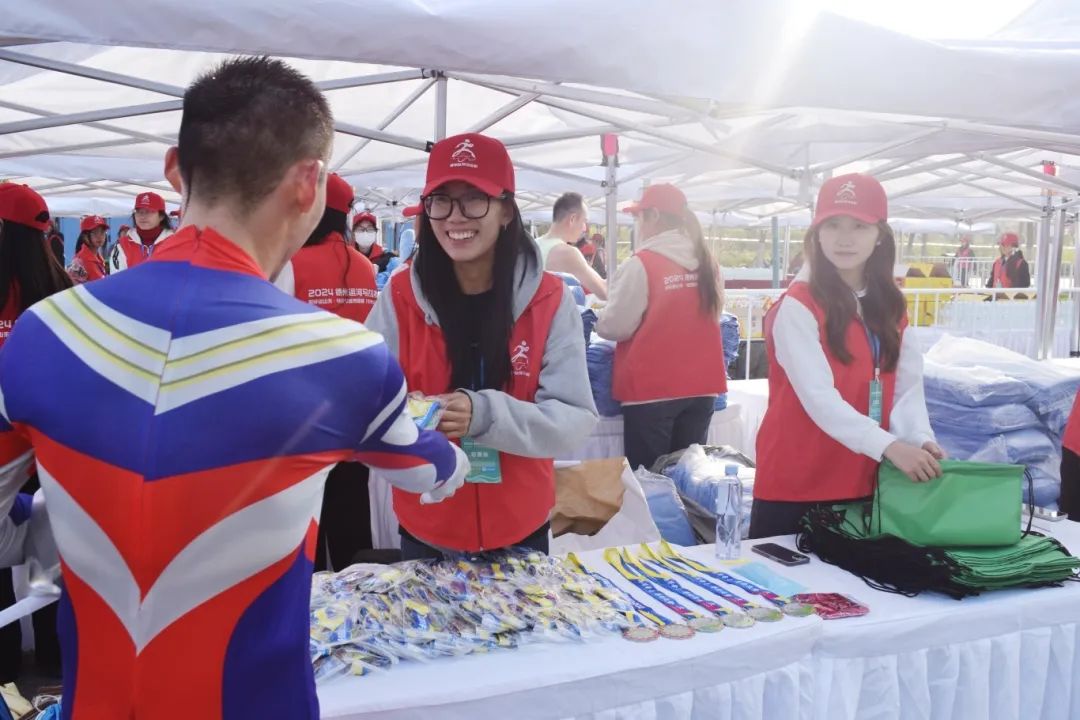 11月3日,2024年德州运河马拉松在德州市盛大开赛,吸引了来自全国各地的数万名马拉松爱好者齐聚一堂,共同见证这场融合了城市魅力与运动激情的体育盛事。太阳成官网共派出636余名青年志愿者,参与此次德州马拉松盛事,他们以饱满的热情,投入到赛事保障服务中,圆满地完成了各项既定工作任务,充分展现了德院青年志愿者的卓越风采。