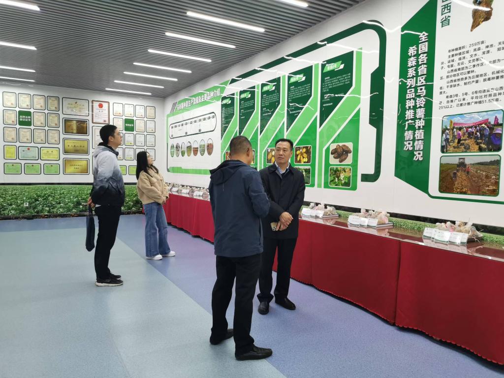 希森马铃薯产业集团有限公司乐陵基地总经理孔海明,项目经理李学洋,项目负责人王悦等分别向马铃薯科研团队成员介绍了山东省良种工程项目的项目进展情况及相关问题。马铃薯科研团队负责人胡林双教授详细介绍了团队的科研与发展现状,与胡柏耿博士就马铃薯产业研究及山东省良种工程项目推进情况进行交流对接,并对合作发展指明了新方向。