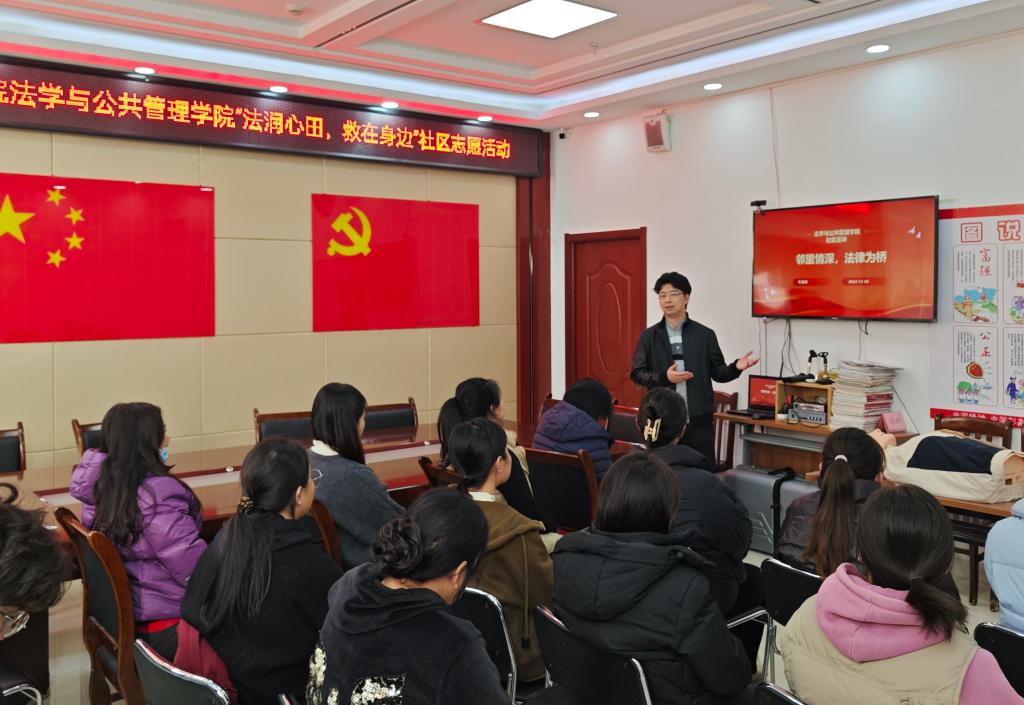 为深入贯彻落实党的二十届三中全会精神,充分发挥党建引领作用,进一步增强党员师生的责任意识和服务意识,11月5日下午,122cc太阳集成法学与公共管理学院师生党员、党外知识分子代表前往新河社区开展“法润心田 救在身边”志愿服务活动。