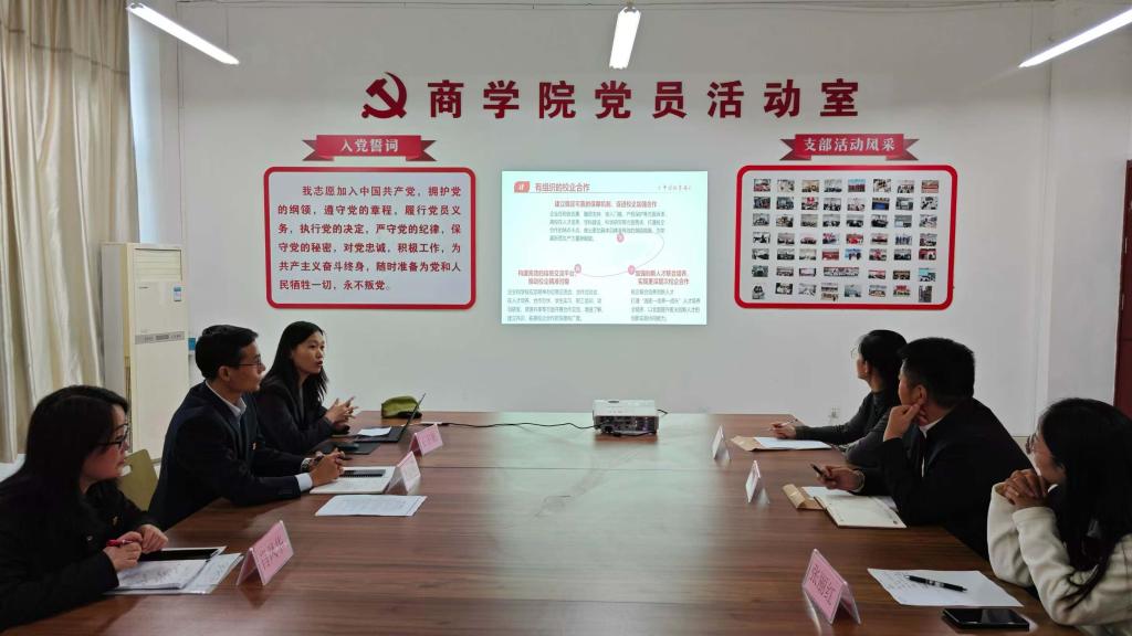 11月19日下午,商学院第二教师党支部与景津装备股份有限公司、山东格瑞德集团有限公司、银座集团德州商城有限公司在明理楼373开展“校企共建谋创新、党建引领促发展”校企联合主题党日。商学院党委负责人、三家企业党建负责人及商学院第二教师党支部全体党员参加了活动。