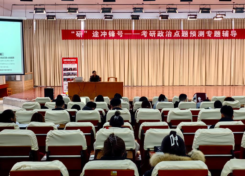 为助力2025届学生考研冲刺,学生工作处积极协调教师资源,特别邀请了知名考研政治辅导专家伍文华教授开展考研政治考前专题辅导讲座。此次活动作为学生工作处推出的考研暖心服务十项清单之一,吸引了全校200余名同学踊跃报名参加。