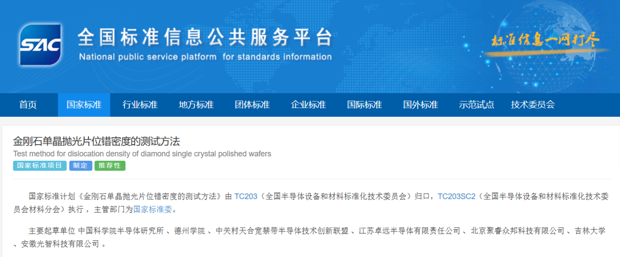 另外,霍晓迪参与起草的两项关于半导体金刚石的团体标准 T/IAWBS 018-2022和T/IAWBS 017-2022也相继发布实施。