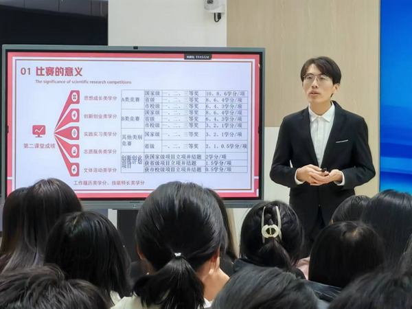 六名参与分享的同学,通过自身的参赛经历,将看似复杂的竞赛规则变得通俗易懂,活动互动环节中,他们耐心答疑,给出有针对性的建议,鼓励学弟学妹把握学校创新创业大赛契机,敢于挑战自己,彰显成长价值。