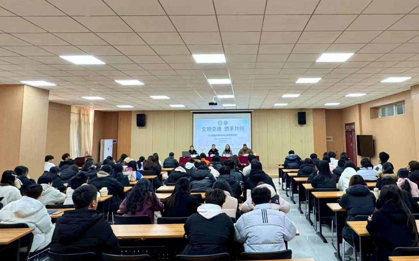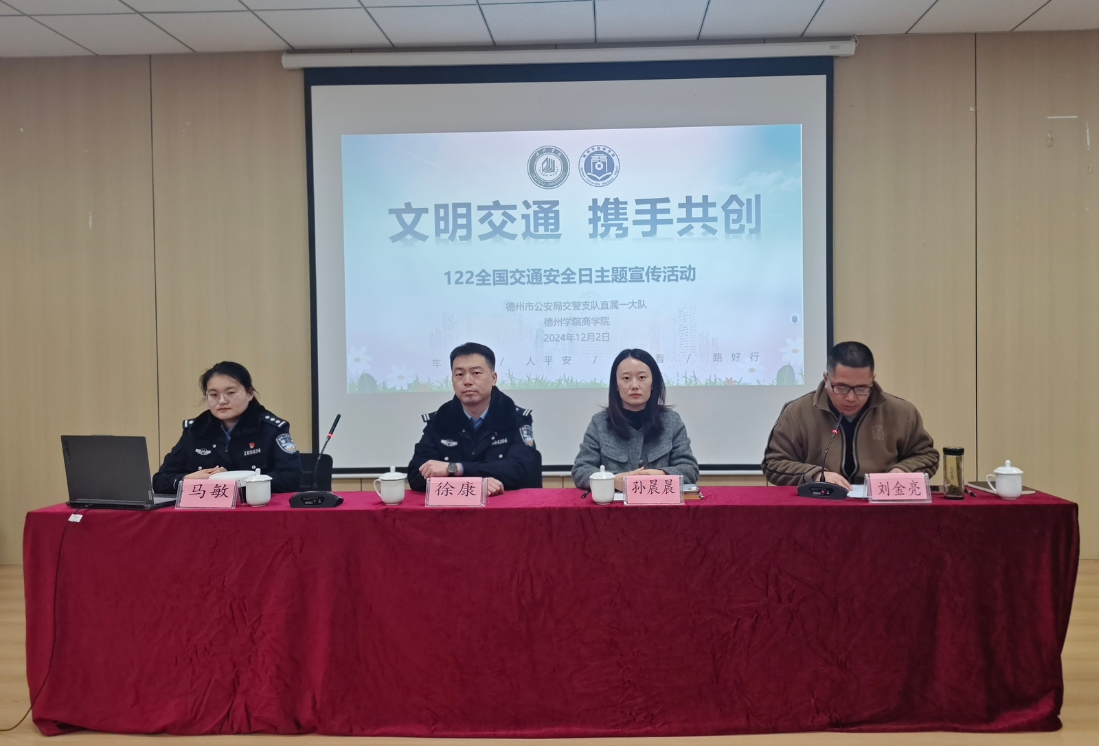 为呼吁全社会共同关注交通安全,携手营造文明、和谐、安全的道路交通环境。12月2日上午,商学院于明理楼0157教室开展“文明交通 携手共创”122全国交通安全日主题活动。德州市公安局交警支队直属一大队教导员徐康警官和宣传科马敏警官,商学院主要负责人,各年级辅导员班主任老师,学生代表共计200余人参加活动。
