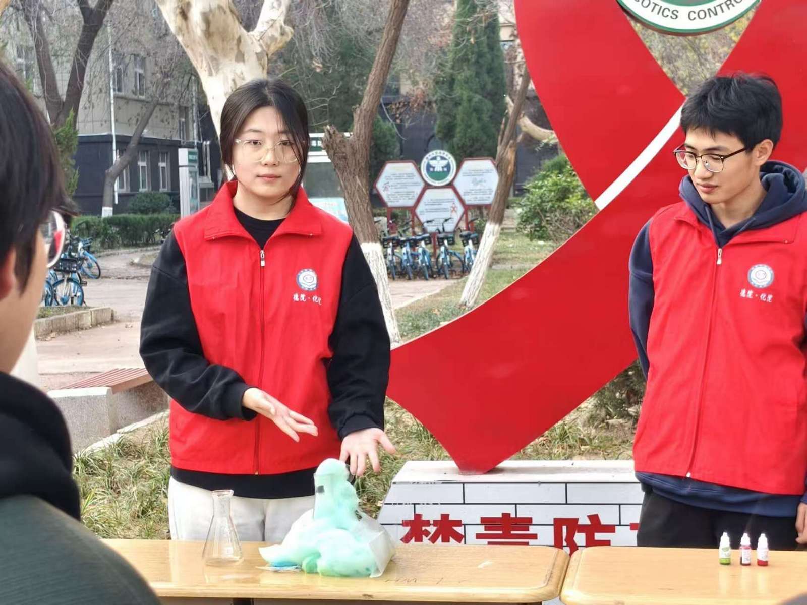 此次主题活动将化学实验和主题宣讲相结合,成功地将抽象的艾滋病预防知识转化为生动形象的视觉展示,为校园防艾宣传注入了新的活力,进一步推动了大学生做到“知艾防艾”,从而助力实现“校园零艾滋”。