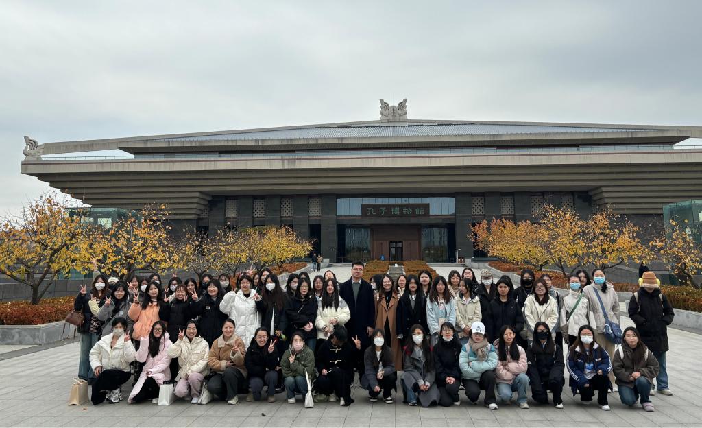 怀着对传统文化的深深敬仰,同学们踏上了探寻齐鲁文化的采风之旅。在专业教师的悉心指导下,分别探访了孔子博物馆(曲阜)、山东博物馆、德州市博物馆等多个文化地标。在采风过程中,同学们通过实地调研、摄影记录、速写捕捉等多元化方式,广泛搜集专业素材,积累了丰富的第一手资料。在孔子博物馆,同学们追溯孔子生平事迹与儒家文化历史渊源,近距离观赏古代服饰等展品,深入了解儒家文化与服饰文化之间的紧密联系,不仅加深了对中国传统服饰文化的理解,更从中汲取了丰富的设计灵感。在山东博物馆和德州市博物馆,同学们更是领略了齐鲁大地多姿多彩的民族文化,欣赏璀璨夺目的服饰文物,感受精湛的传统工艺与民间艺术,众多珍品的造型、纹样、色彩及其他风格元素都成为了未来艺术创作的宝贵素材与灵感源泉。在鲁锦展馆,同学们深切感受到了生态的责任担当与非遗文化的代代相传,同时也感受到科技的革新魅力和时尚的永恒追求。