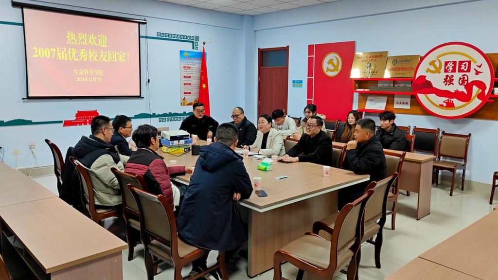 12月7日,生命科学学院于求实楼204会议室召开校友座谈会。2007届8名校友满怀热忱,从上海、杭州、烟台、济南等地赶来,在阔别母校17年后重返母校,喜看学校发展新貌,重温恩师教诲,共话母校发展。生命科学学院相关负责人、辅导员、班主任及在校生代表参加座谈。