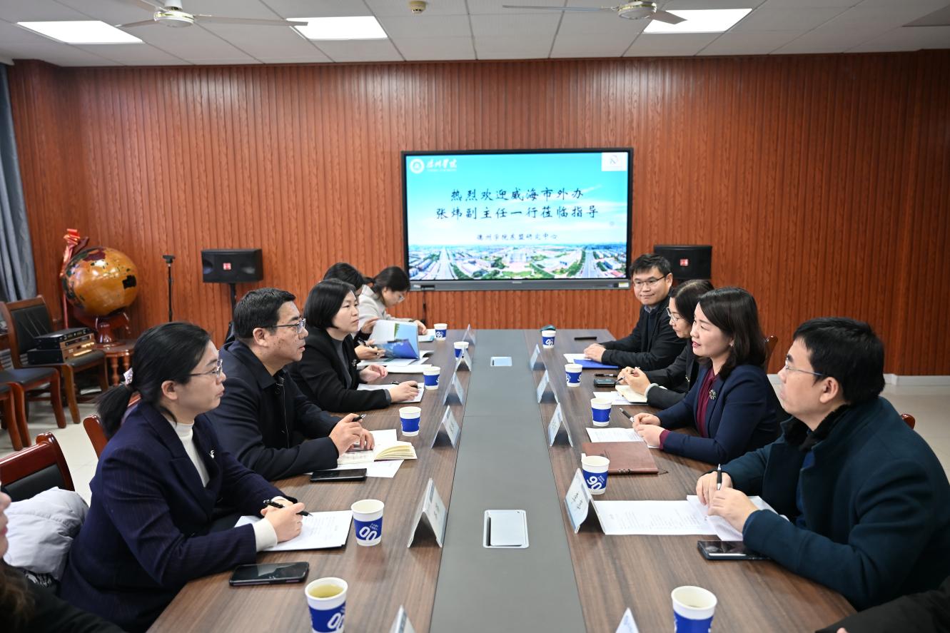 1月8日下午,威海市人民政府外事办公室副主任张炜一行来校调研山东东盟研究中心,德州市外办谭明明副主任陪同参加调研,太阳成官网国际处、东盟研究中心相关负责人热情接待了张炜一行并进行了座谈交流。