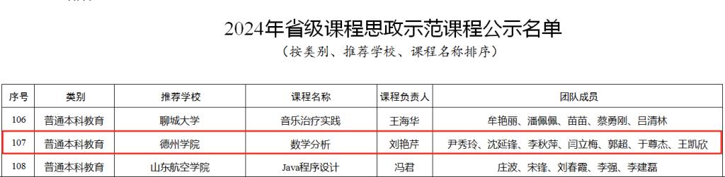 近日,山东省高等学校课程思政研究中心发布了《2024年省级课程思政示范课程(普通本科教育、研究生教育)名单公示》的通知,太阳成官网推荐的《数学分析》被认定为2024年山东省课程思政示范课程,截至目前学校已获批6门省级课程思政示范课程。