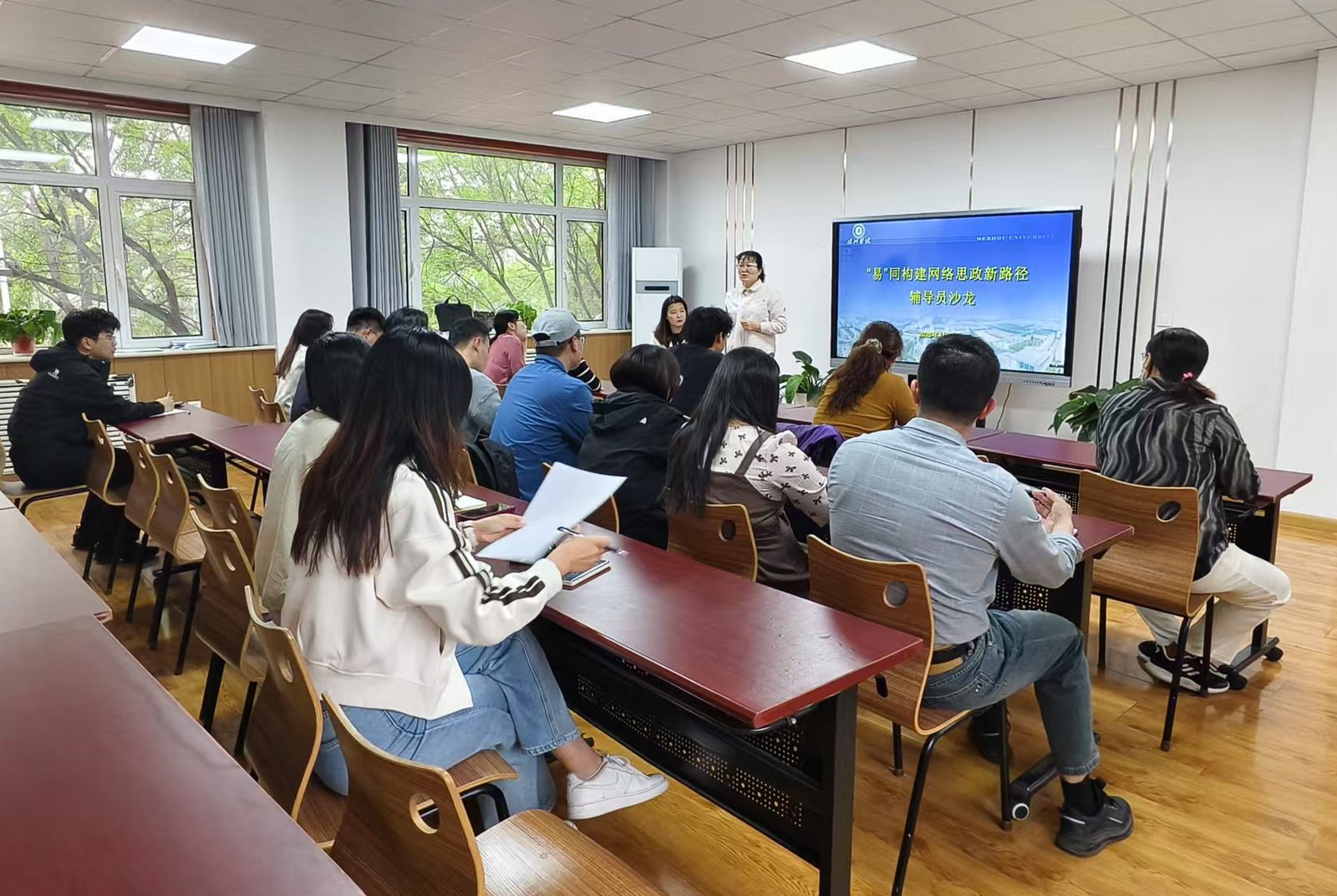 活动聚焦新时代网络思政教育工作创新实践开展深度交流研讨。主讲人从德院易班品牌建设、易班平台共建、易班建设考核指标、功能应用等四个方面展开,系统介绍了学校依托易班平台深耕网络思政的八年实践。作为学校网络思政的重要阵地,德院易班始终秉持“符合学生品味,满足学生需求,促进学生发展”理念,打造了集平台搭建、新媒体运营、二级学院分站培训于一体的工作体系,先后获评“全国易班优课求职辅导课程学习大赛优秀组织奖”“山东省优秀易班共建高校”等荣誉,形成特色鲜明的“德院易班”品牌。