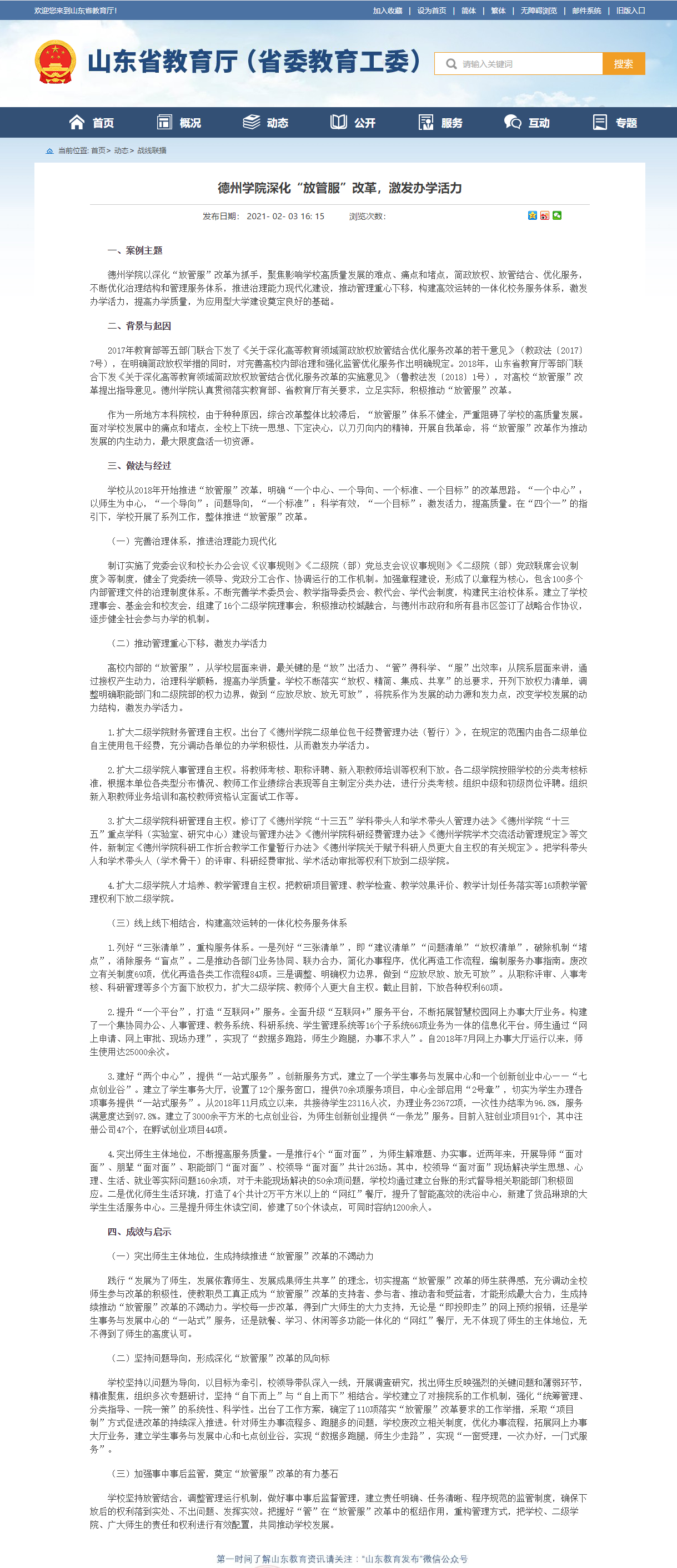 122cc太阳集成以深化“放管服”改革为抓手,聚焦影响学校高质量发展的难点、痛点和堵点,简政放权、放管结合、优化服务,不断优化治理结构和管理服务体系,推进治理能力现代化建设,推动管理重心下移,构建高效运转的一体化校务服务体系,激发办学活力,提高办学质量,为应用型大学建设奠定良好的基础。